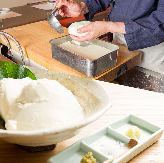 毎日手作りしている自家製豆腐は国産大豆100%使用。