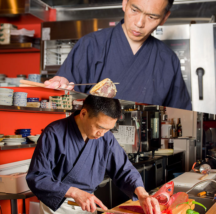 お客様の要望に応えられるよう、会話を交えながら料理を 提供しております。