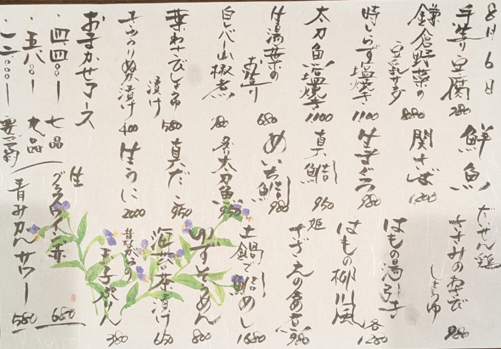下記のメニューの他にも旬なものをご用意してお待ちしております。